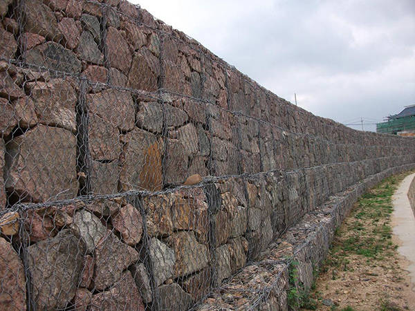 石笼网由高不腐蚀、高强度、具有延展性的低碳钢丝或者包覆PVC的以上钢丝使用机械编织而成,使用该网制作而成的箱型结构就是石笼。根据ASTM和EN标准,所使用的低碳钢丝直径根据工程设计要求而不同。一般介于2.0-4.0mm之间,石笼网钢丝的抗拉强度不少于38kg/m2,金属镀层重量一般高于245g/m2,石笼网片的边缘线直径一般要大于网线直径。其双线绞合部分的长度不得小于50mm.以保证绞合部分钢丝的金属镀层和PVC镀层不受破坏。